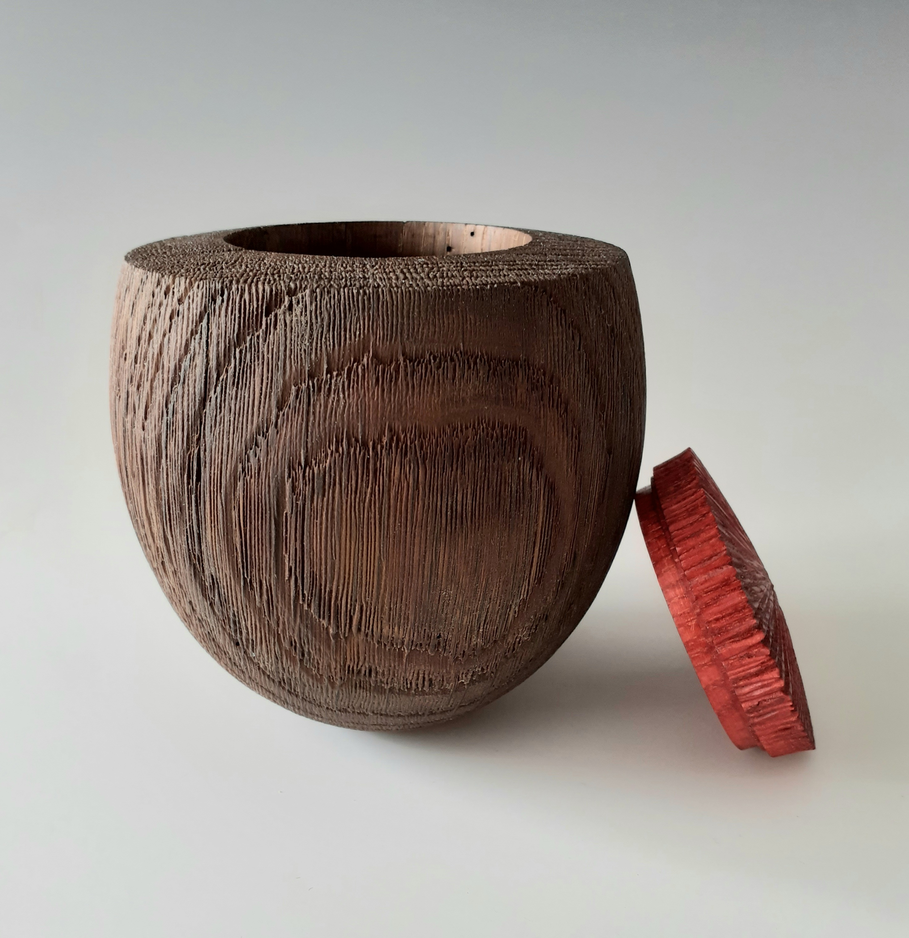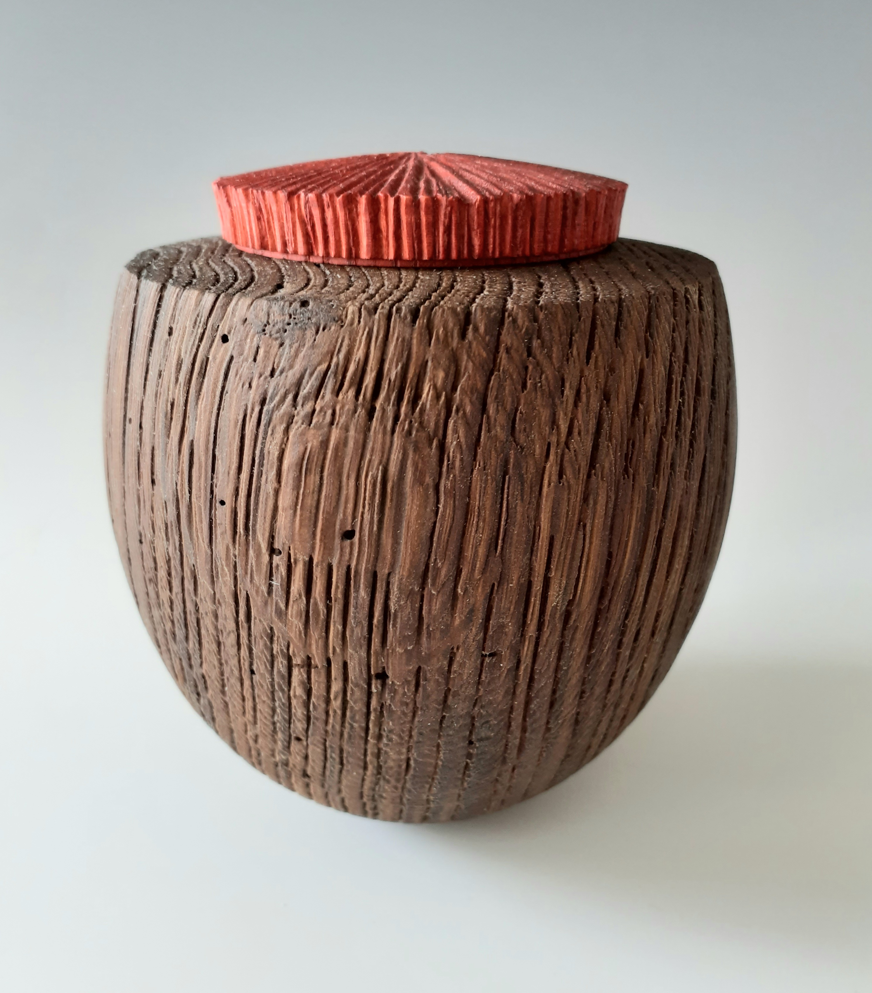 Eiche, Esche, sandgestrahlt, geschnitzt, geräuchert, gebeitzt.
