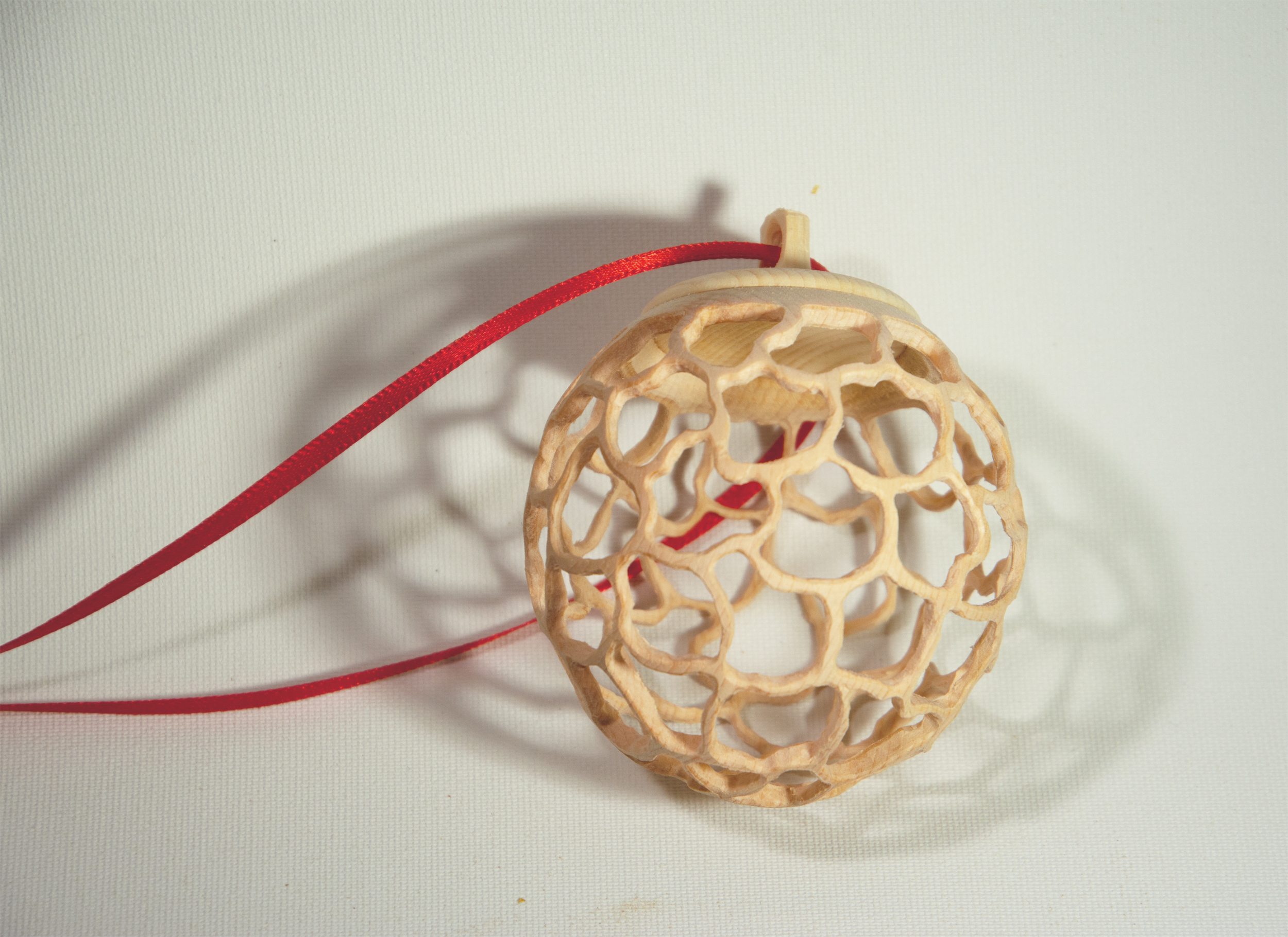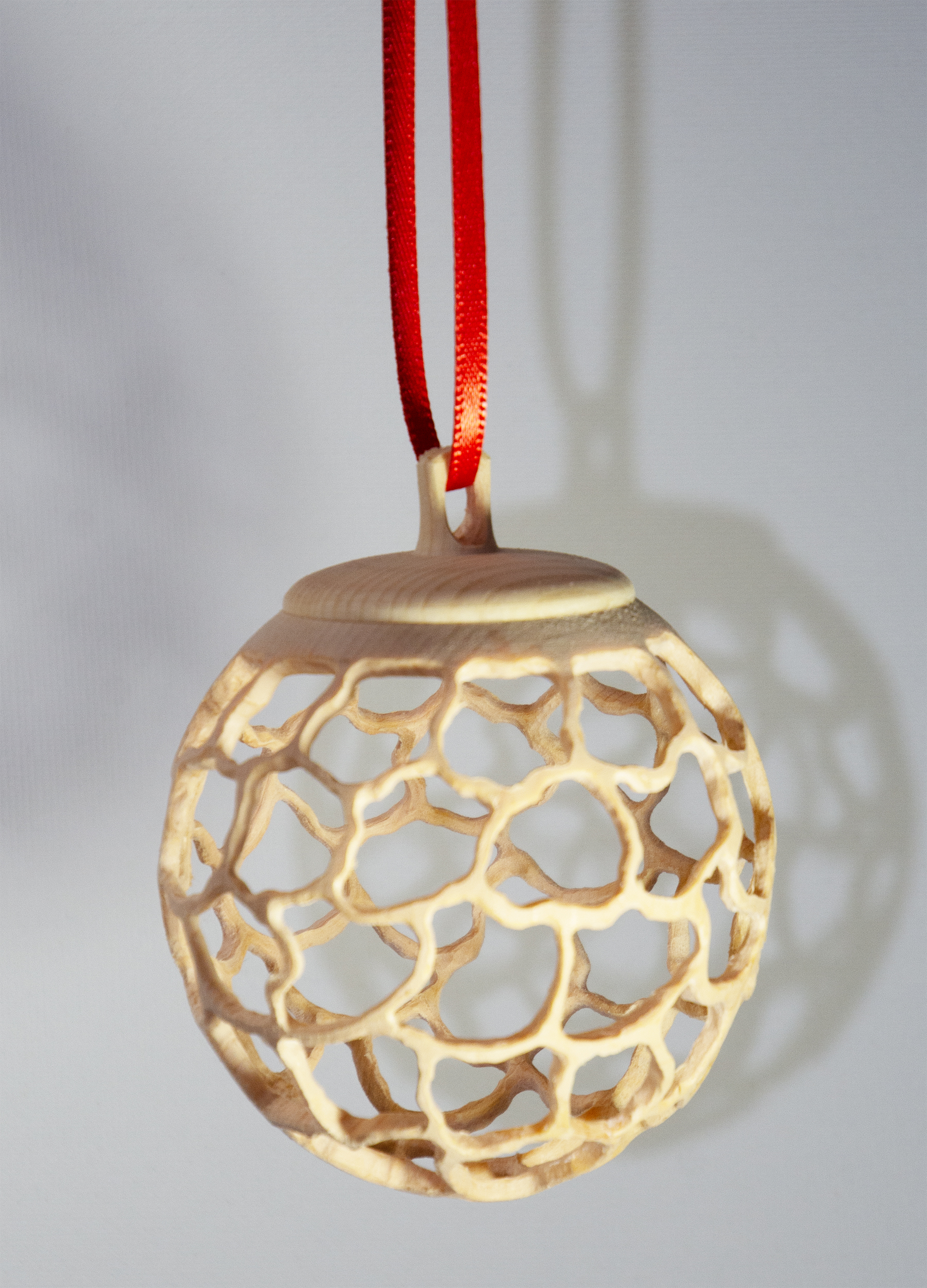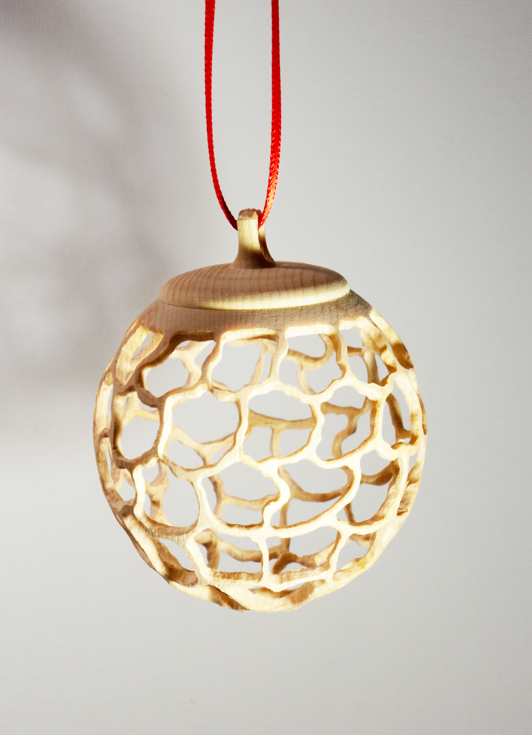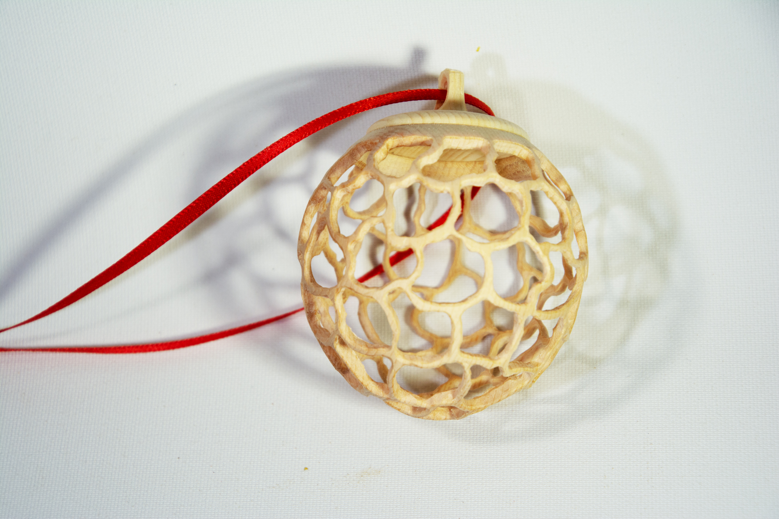 Christbaumkugel aus Zirbe - große Fräsung - 60mm