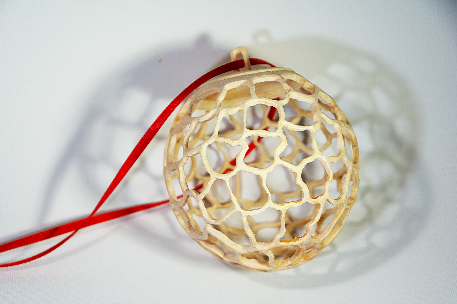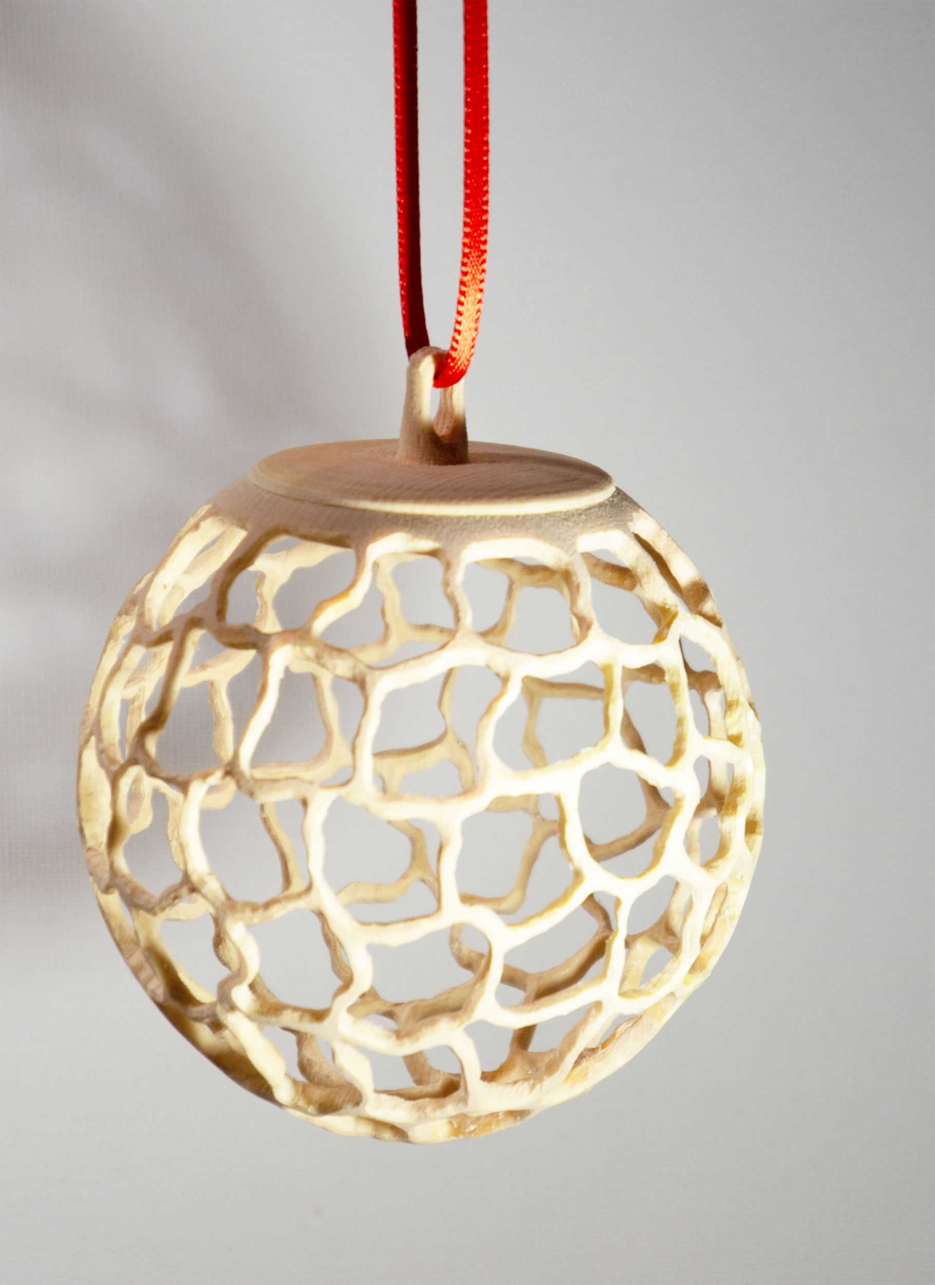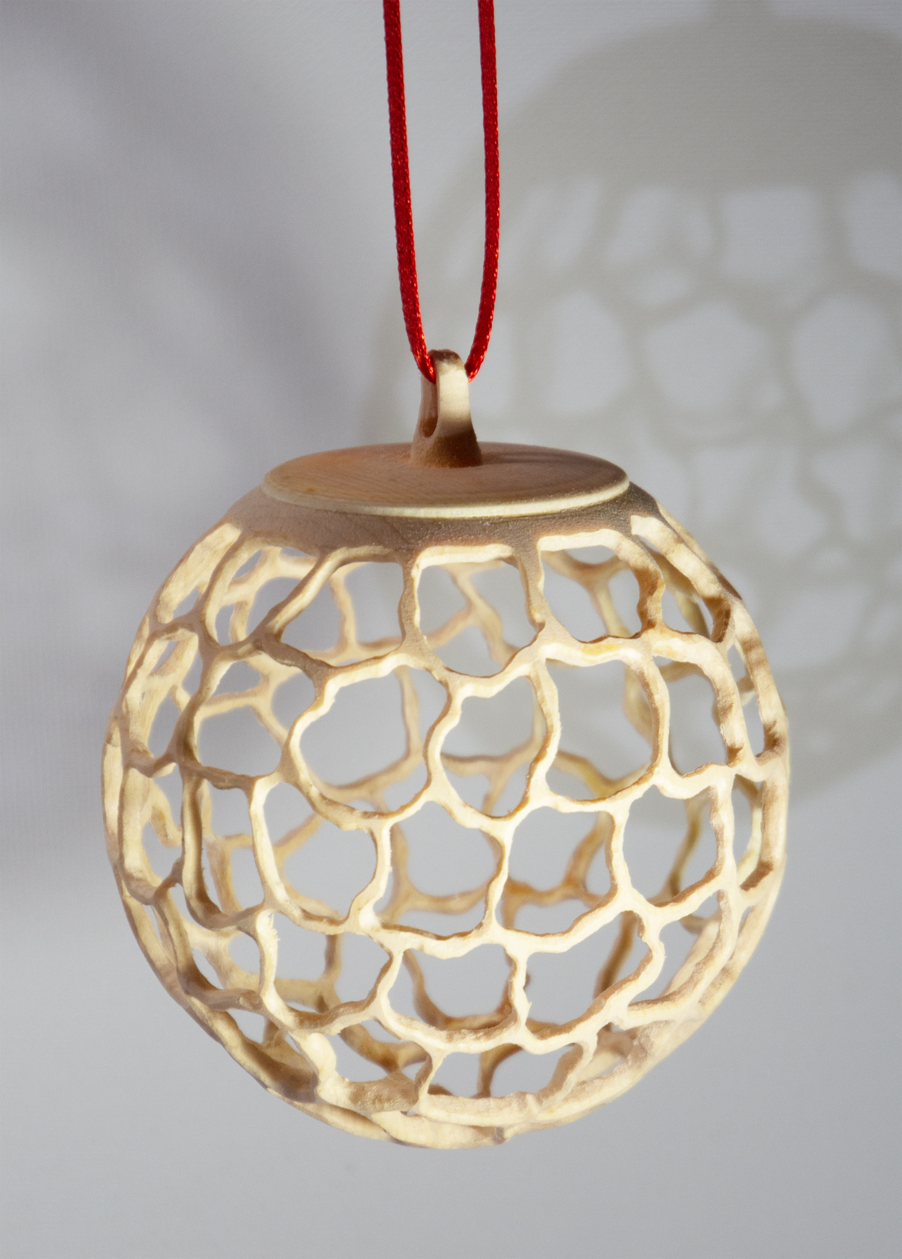 Christbaumkugel aus Zirbe - große Fräsung - 70mm