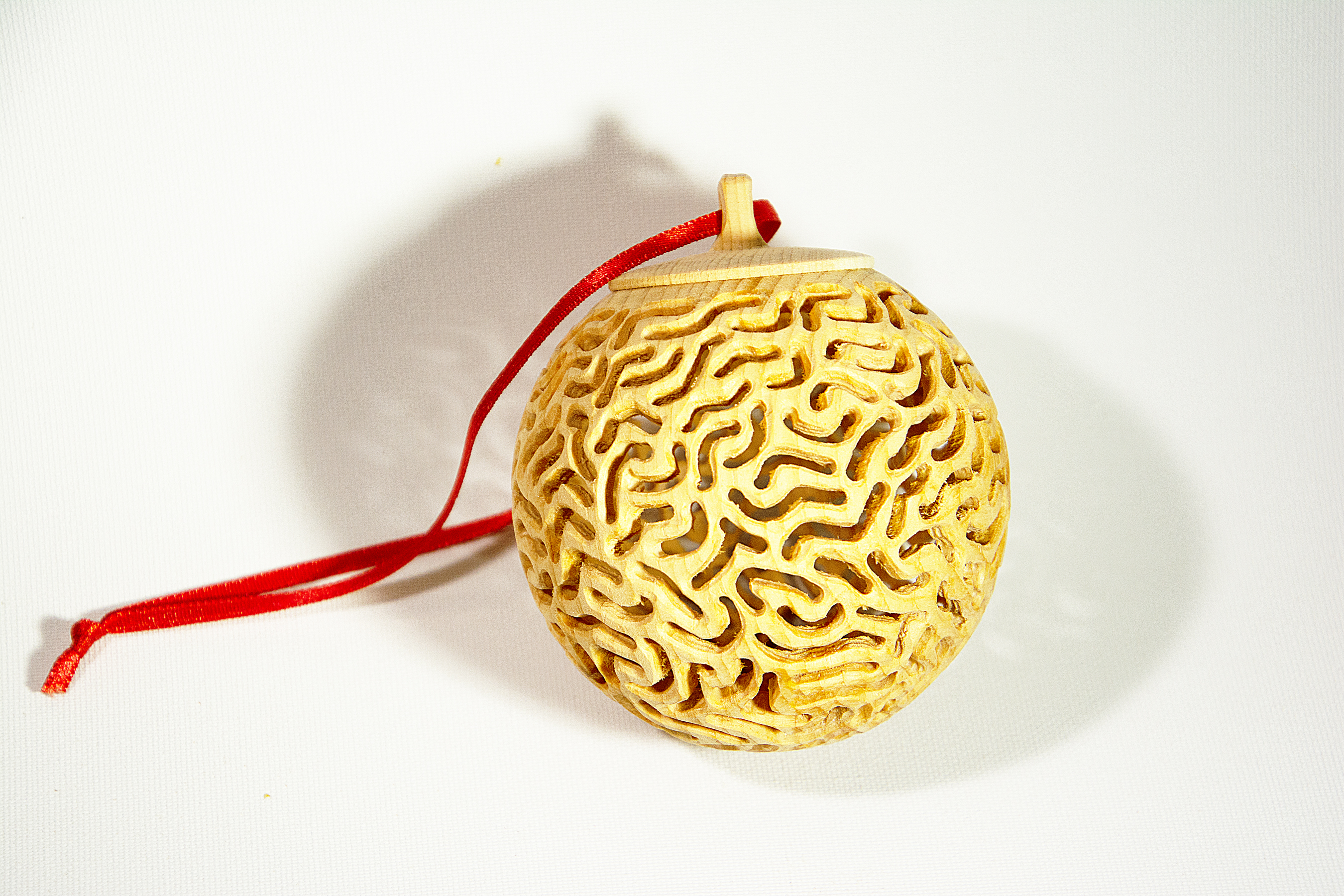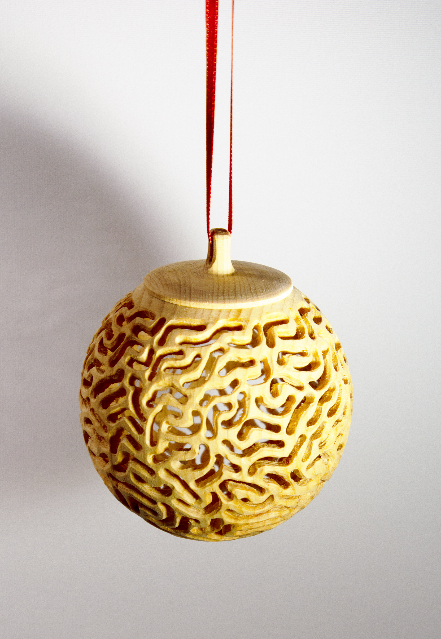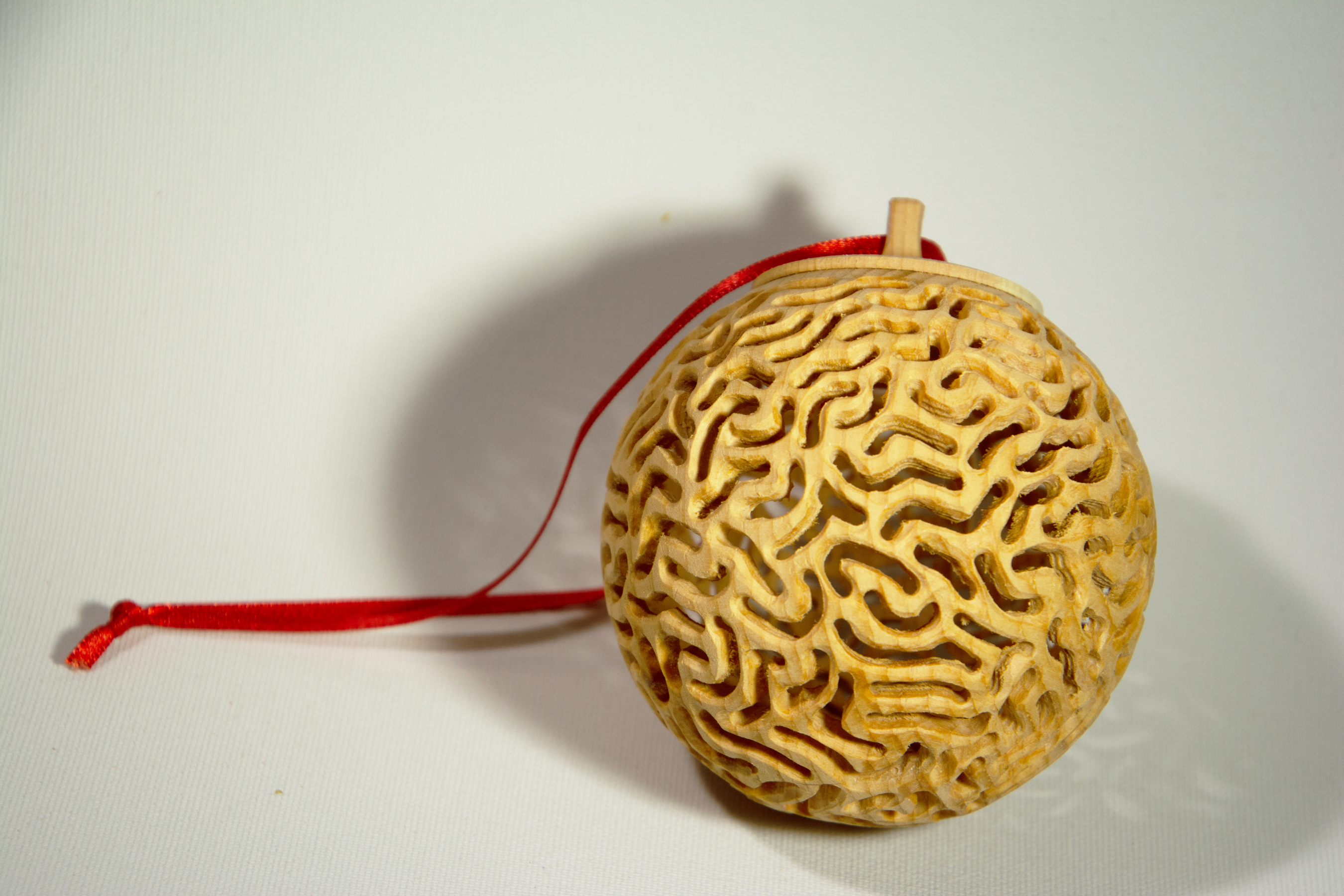 Christbaumkugel aus Zirbe - kleine Fräsung - 70mm